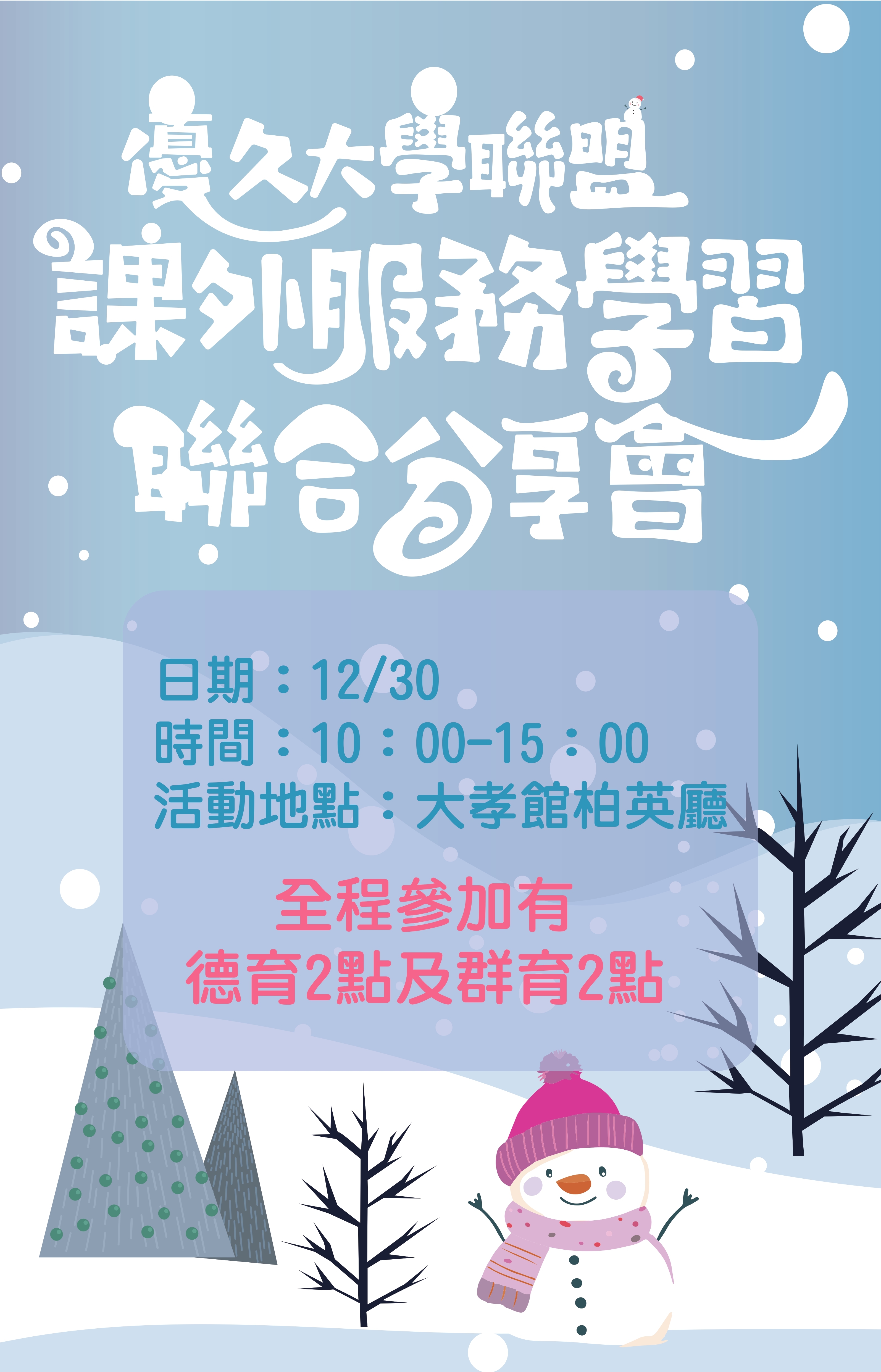 2024年優久大學聯盟課外服務學習聯合分享會,全程參與者,可獲得全人學習點數德育2點、群育2點,鼓勵同學參加!