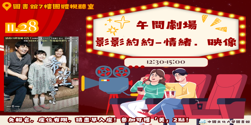 【圖書館】11/28辦理 午間劇場-影影約約-情緒.映像,播放「希望:為愛重生」